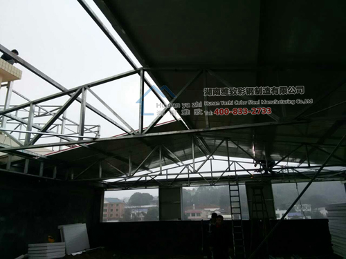 莲花县李总经人介绍,听说我们湖南雅致彩钢做活动板房在长沙数一数二,就想让我们帮他在六楼做一栋约300平方的豪华活动房,考虑到安全原因,本不接此类型单,但李总竭力要求让我们做,最终公司决定还是接下此单。接着就是准备材料进厂,为了保证安全,公司安排每天领导现场监督,时刻提醒员工注意安全,目前此项工程正在紧张的施工中,我相信,有我们专业的施工队伍,此项工程一定能够圆满收官,给我们客户带来惊喜。