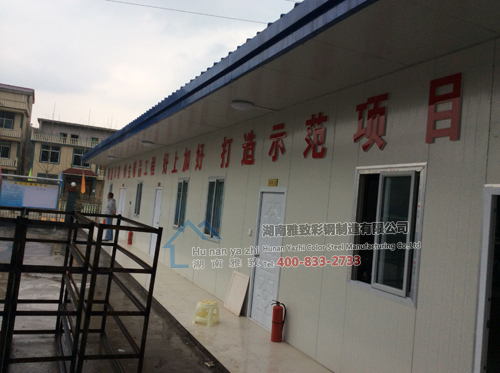 项目部领导经人介绍找到我们,要求做蓝色豪华活动板房工程,因项目部领导即将迎来大检查,工期非常紧,我们的员工不怕辛苦,每天晚上加班到10点,就算下雨也想办法把能做的做好,最终在客户要求的工期内顺利完成了整个项目,项目部领导验收后说我们做的板房非常精致、豪华,不愧是湖南省最好的活动板房公司之一。