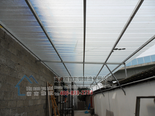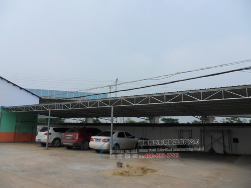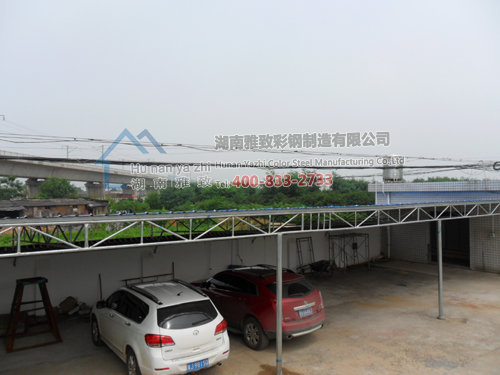 长沙乐丰涂料有限公司陈总找到我们,要求我们帮忙做一个约200平方的蓝色彩钢棚和一个约100平方的透明棚,主要用于停车与过行人,因同属于长沙县,相隔不远,我们邀请陈总来我司参观详谈,经过详细了解后,很快就将此项目确定下来,将合同签订下来。材料准备妥当后,立即安排员工进场安装,咱们雅致人根据现场情况,非常合理的设计施工,最终出来的效果客户也是相当满意。