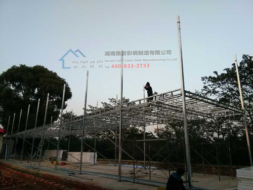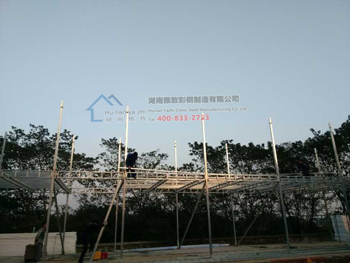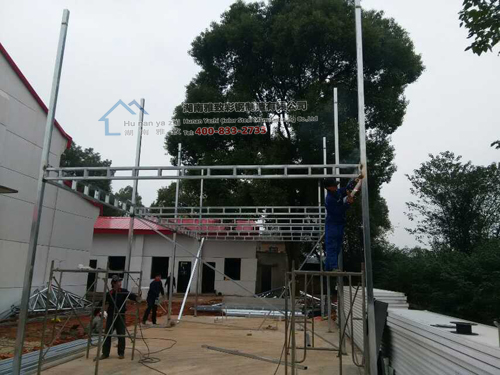 捞刀河项目总共约600平方的精致活动房,为我们的老顾客,因为前期项目部地基没有弄好,一直没有进场,最近罗总打电话过来,说可以进场了,所以工期特别紧,公司立即安排人员进场,为了保质产品质量及美观,所用骨架材料全部采用了足厚防锈镀锌管,手工焊接,保证了整个活动房的结构稳定性,目前整个项目正在紧张地施工中,相信最终一定可以做出让客户十分满意的产品。