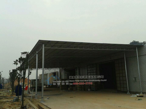 同升湖一老板很早就找到我们,要求帮他们做一个约500平方的彩钢棚,与工厂大门直接连接,方便装卸货及可放置一些货品,因公司年底工程已排满,一直没有时间帮客户去做,最近刚好电焊班有时间,公司立即安排过去,按照事先设计好的图纸进行施工,咱们不怕苦,不怕累,晚上也加班,很快完成了此项工程,在客户验收时,称赞我们人做事不错,大棚也做非常美观,下次有这样的业务还找我们来做。