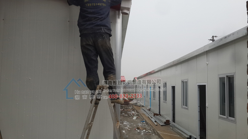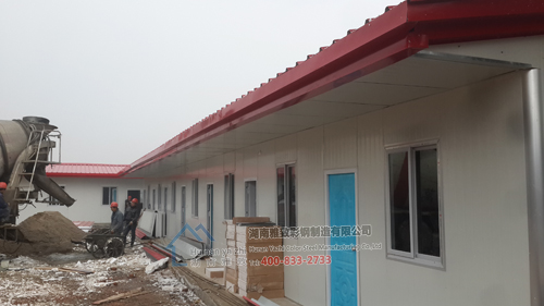 益马高速五标与之前3000多平方的项目部同属于一家公司,客户要求做成风格类似的活动板房,公司接到该项目后,立即组织人员进场,紧锣密鼓地进行安装,由于基础做的并不平整,给我们安装带来困难,但我们员工发挥聪明才智,一一将困难克服,最终的效果得到了客户的认可,我们会始终努力,为客户提供最漂亮、最舒服的工作与生活环境。