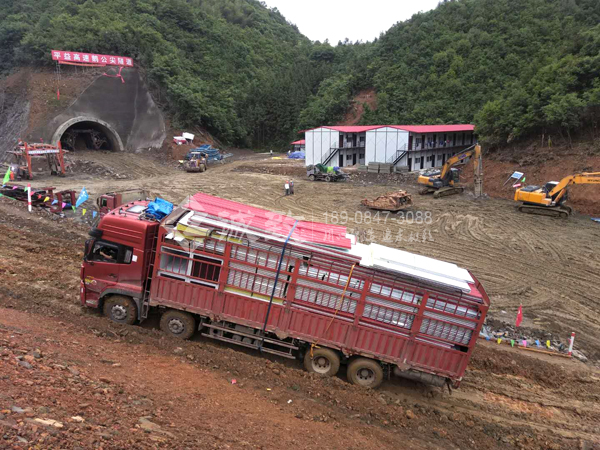 湖南交水建集团平益八标隧道驻地及拌和场临建工程,包括有标准K式活动板房、料仓、钢筋加工棚、堆料棚等产品,驻地设计有办公室、宿舍、厨房、餐厅、厕所、浴室、硂养护室、地磅房、门卫室等,功能也十分强大,目前我们湖南诚致已进场,正在紧张地施工当中。