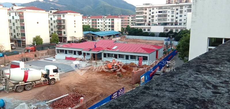中南建设集团怀化舞水路项目经理部,全部都由我们湖南诚致设计打造,从8月11日进场,我们诚致人看着它慢慢建成,该项目总共有十二栋豪华四坡活动板房,栋与栋之间也都由过道连廊连接,总共建有3200平方活动板房,目前正处于收尾阶段。