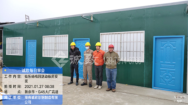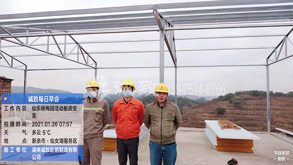 年底快到了,收到新余仙女湖景区仙乐杨梅园需要搭建一个【开放式走道豪华双坡单层活动板房】的订单需求,考虑到年底了,客户想年前把这个活动板房搭建完成,不耽误过年期间及年后的正常运营;