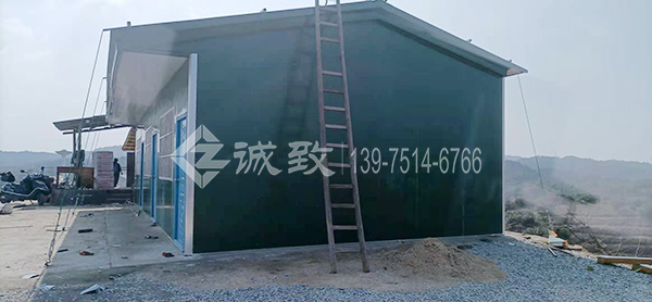 在材料运送到位后,加班加点安装搭建,终于在短短的三天不到的时间内,将景区的豪华双坡活动板房搭建完成。