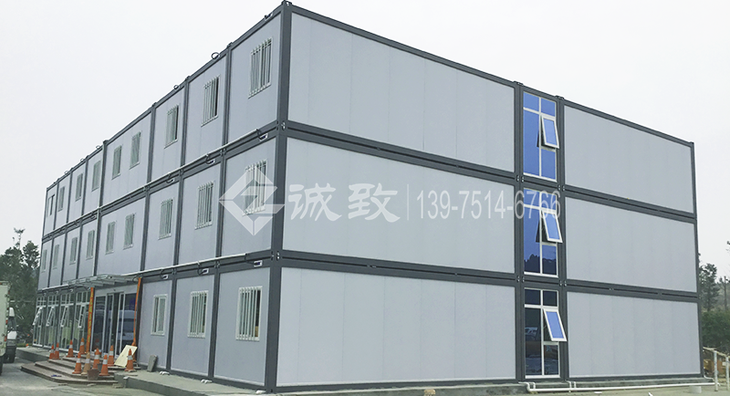 湖南湘水缘项目总工有51个异型打包箱,3个厕所箱,15个走道箱,3个楼梯箱,总共建三层;