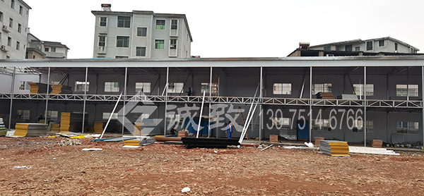 今天给大家分享我们在江西新余市正在搭建的一个豪华活动板房项目部临建驻地案例,虽然三月雨天不断,我们也克服困难,为项目部准时搭建好办公大楼。