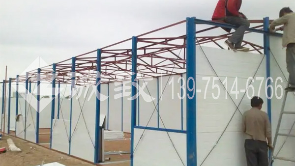 2、活动房系钢结构件整栋连接,用户布置用电照明设备,电线不能直接绑扎在钢结构上,应设线管或线槽隔离安装,以免发生触电。