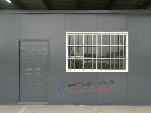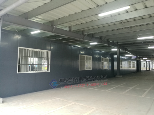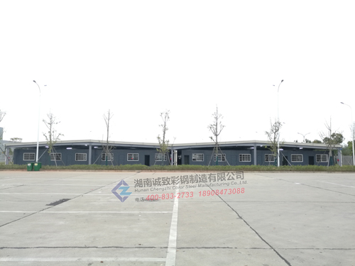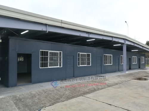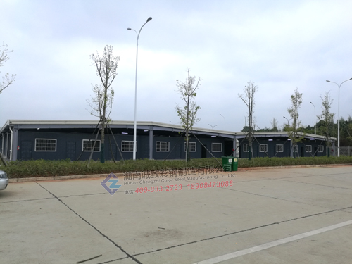 本工程为两栋阻燃型豪华平顶活动板房,总建筑面积约为400平方,按客户要求喷成上汽大众的深灰色,与停车场主体色融为一体,深受客户喜欢。