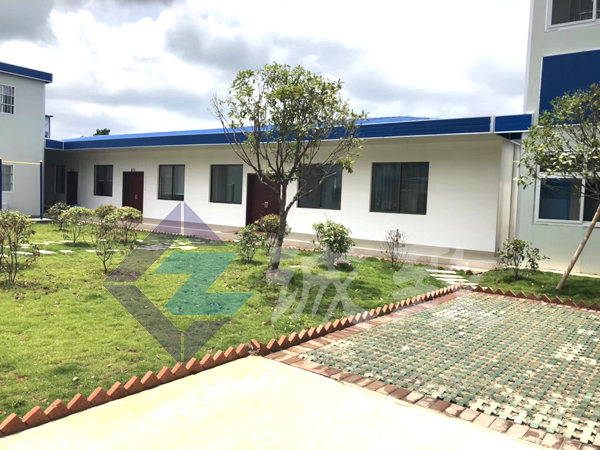 本工程为中铁二局第四工程有限公司在郴州的项目部驻地工程,活动板房总共为3532平方,其中项目部为豪华四坡活动板房,面积为1612平方,民工区与宿舍为标准K式坡顶活动板房,面积为1920平方,经过我们湖南诚致人20多天的努力奋斗,最终将一个精致、大气的项目部驻地展现给了我们的客户,赢得了客户的高度赞扬。