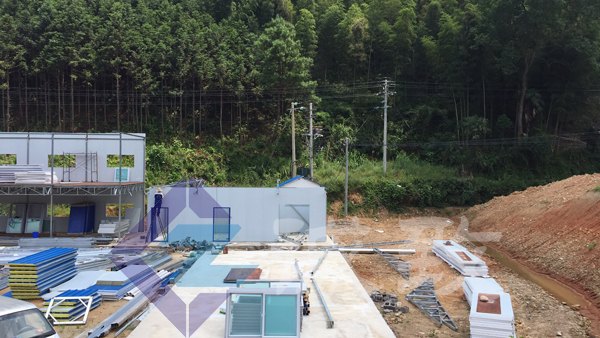 广东水电二局蓝山毛俊水库二期活动板房与彩钢棚项目紧张施工中