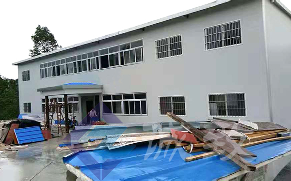 广州花都污水处理厂项目,为我们的客户广州中水再生环保科技有限公司承建,我们湖南诚致负责该项目临建板房建设,为豪华四坡双层活动板房,总共面积为484平方,上下楼都设计成封闭走道,非常适合办公需求,目前正在紧张施工中,相信不久将又是一个大美工程献给我们的客户。
